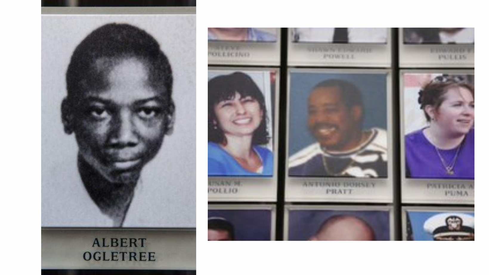 On Tuesday, March 15, 2022, the long-lost portrait of victim Albert Ogletree was installed in the In Memoriam Memorial Museum exhibition. Until 2022, the oak leaf symbol was used to represent him in the exhibition. No family members had come forward to contribute to his memory. His photograph was discovered in his high school yearbook, offered on loan by Kathy Abdo, Romulus Councilwoman and former teacher at Romulus Community Schools in Michigan. The photograph was scanned from the yearbook, and the book was returned to the city. Ogletree's stepdaughter, Justine Jones, noted that his looks had not really changed at all between the 1966 high school yearbook photo and 2001 when Ogletree died in the North Tower as an employee of Cantor Fitzgerald Forte Foods Service at age 49.