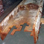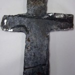 The above photos show the steel beam from which crosses were cut and a cross freed from the steel with a blow torch.