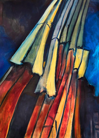 For months after the attacks, he regularly ventured to the stricken site, getting as close as he could to see and sketch the ruins. Back in this studio, he then pictured what he saw, felt, and experienced, created drawings and then paintings notable for their bold strokes, arresting colors, and monumental scale.