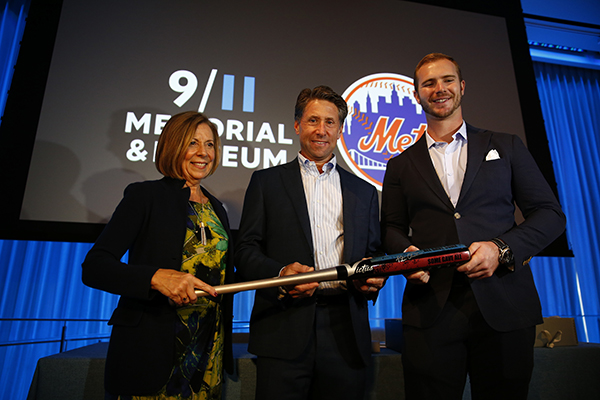 Alonso made the donation on Tuesday, Oct. 1, at the 9/11 Memorial & Museum following a private tour with 9/11 Memorial & Museum President & CEO Alice M. Greenwald. Alonso was joined by his family and members of the Mets organization including Mets Chief Operating Officer Jeff Wilpon.