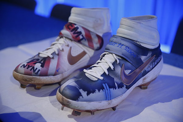 Mets rookie sensation Pete Alonso donated his 9/11 tribute cleats and an autographed commemorative bat to the 9/11 Memorial & Museum. The first basemen wore the cleats during a game on the anniversary of the 18th Anniversary of the 2001 attacks.