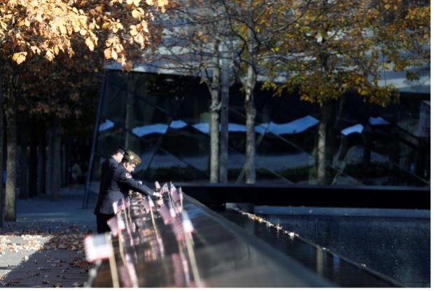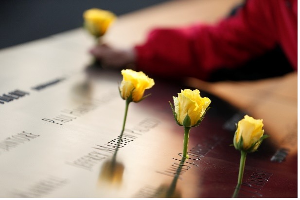 Volunteers from TD Bank and Team Red, White and Blue placed yellow roses at the names of the veterans who passed away on 9/11.