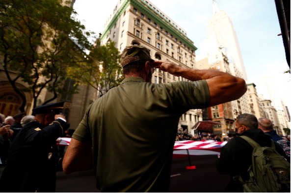 Participants in the annual Honor Ruck, comprised of veterans and supporters, received a flag that flew over the WTC site on the 10th anniversary of the attacks.