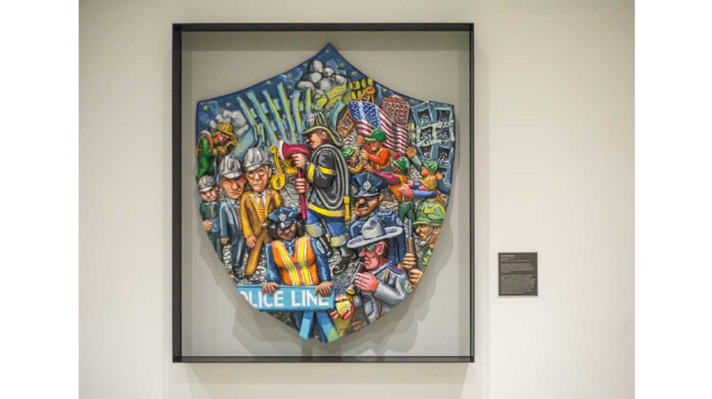 Given the compound of fear, heartaches, and disruptions weathered by our nation and world since March, The Shield reminds us of what hope looked like in the hard wake of the September 11 terror attacks. This was Grooms’ tribute to humanity’s unstoppable spirit and collaborative wiring, explaining its seamless fit on the walls of the South Tower footprint today.