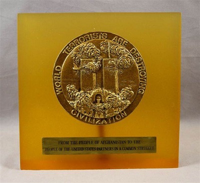 Plaque presented to the people of the United States from the people of Afghanistan, January 28, 2002. Courtesy of the George W. Bush Presidential Library and Museum.