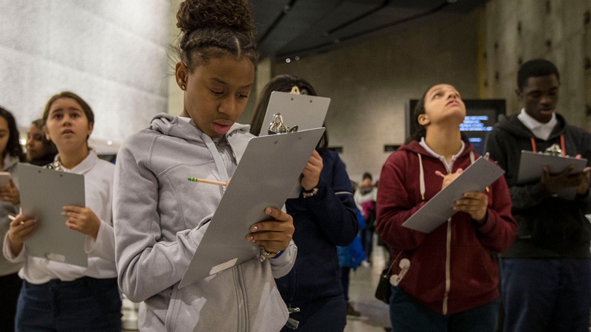 Join an educator on a 45-minute age-appropriate guided tour of the 9/11 Memorial Museum. The program explores what happened on 9/11, how people responded in the aftermath of the attacks, and includes an art activity honoring the lives of the victims. All programs are in English and led by our education staff.
