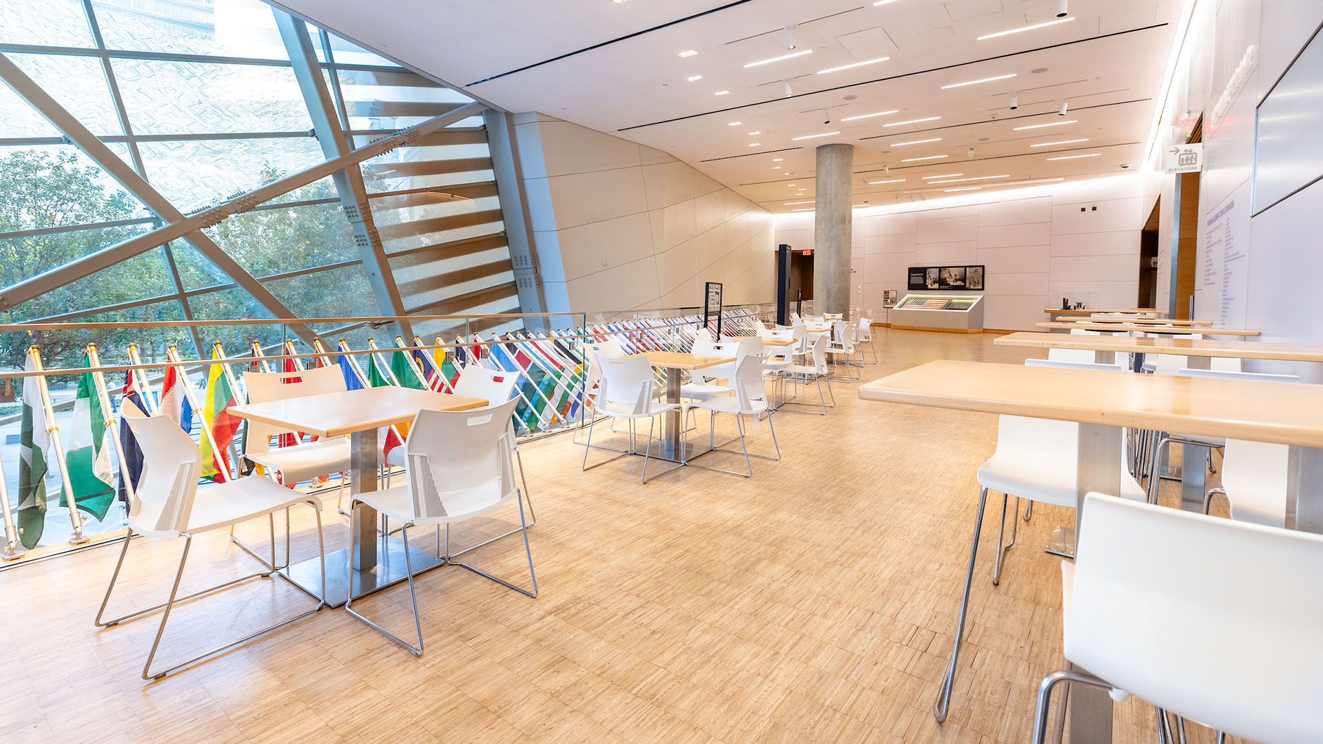 Open from 9 a.m. to 6 p.m., the Museum café is located on the atrium terrace and offers a light-filled spot for rest and refreshments during your visit. Your café purchases and donations help sustain the 9/11 Memorial & Museum.