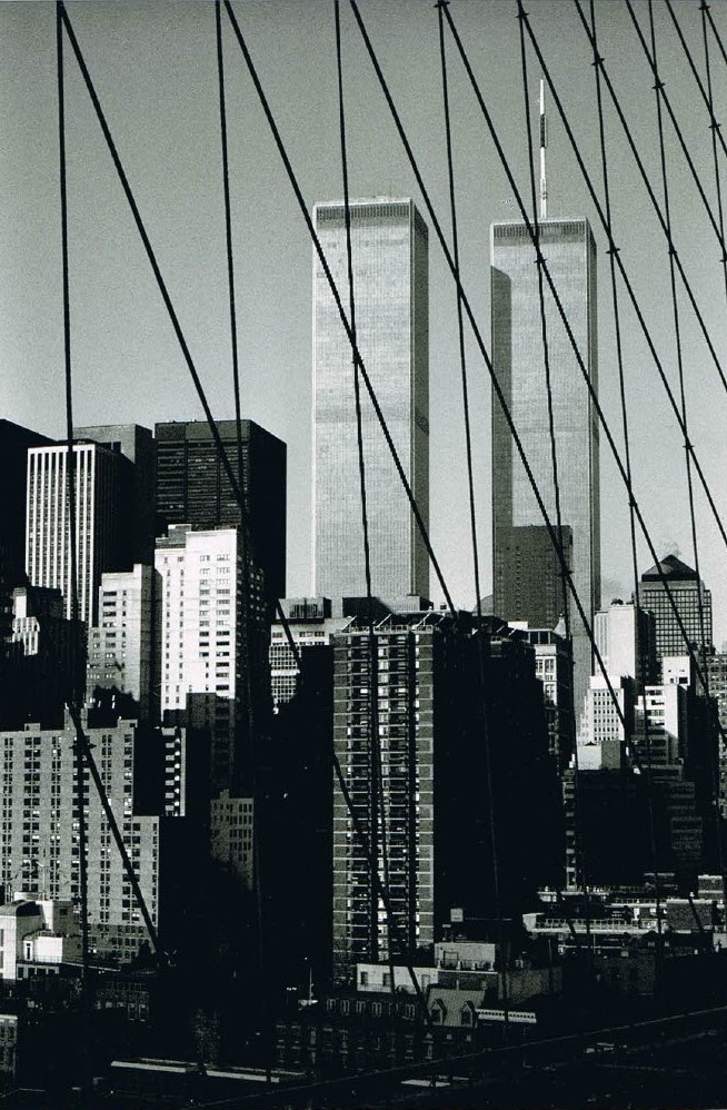 In 1998, I sought to capture the tower’s precise geometry, framed by the mathematical harmony of the Brooklyn Bridge’s cables, accentuating their towering stature in Lower Manhattan’s skyline. The cables now seem to bow in deference to the towers.