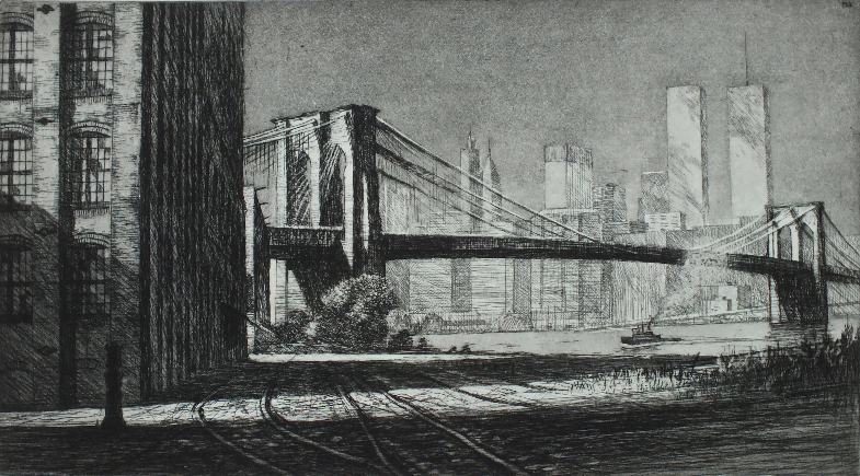 In 1986 I created a momissioned mural using the image of the Manhattan skyline , as seen from Brooklyn Heights. Almost 30 years later I created this limited edition etching.