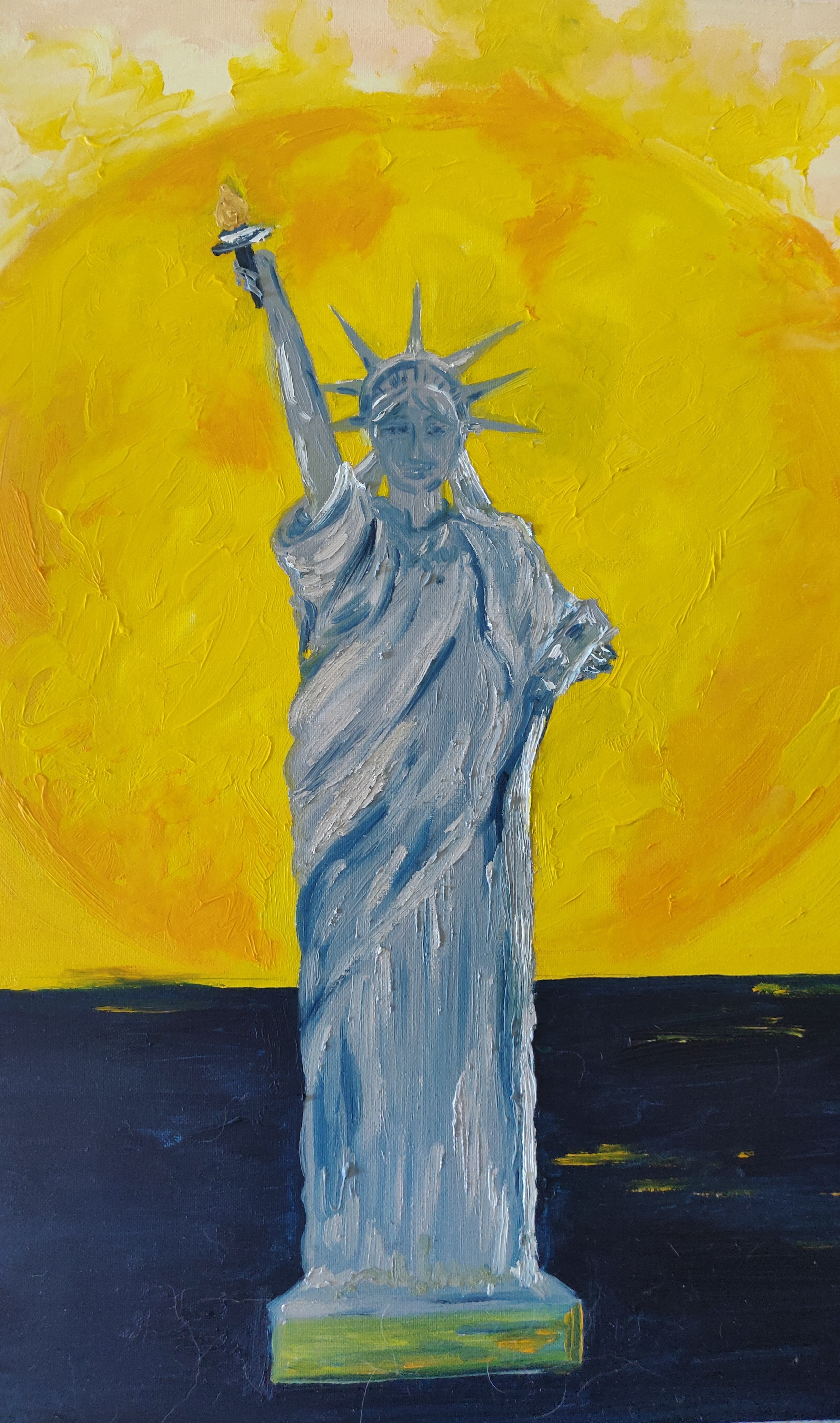 This second oil painting of the Statue of Liberty represents us overcoming the sad events of 9/11 and wishing all the light and happiness to New York.