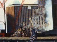 The World Trade Towers had been my subway stop, with numerous little underground shops and a florist cart I had patronized. Artists in my loft building used to roller-skate with their kids in the evenings around the fountain off of Church Street. My husband had inspected Windows on the World, the restaurant at the Tower’s top. I had hand-lettered signs in both towers, including former Governor Mario Cuomo’s door. This was my neighborhood that was destroyed.