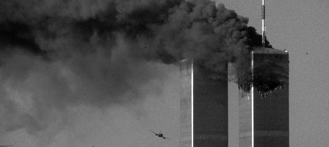 Hijacked Flight 175 about to hit the South Tower, September 11, 2001. Photograph by Sean Adair, Reuters.